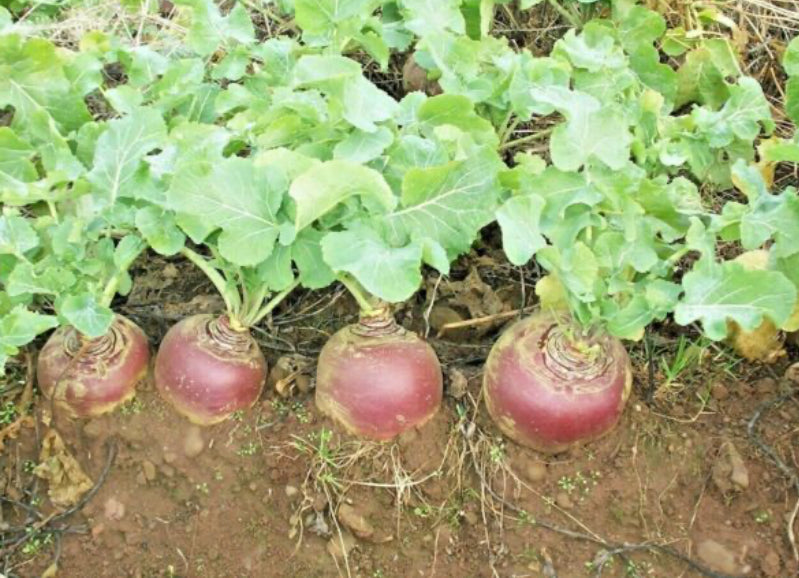 Rutabaga is an easily-grown, annual plant in the brassica family. The plant produces a huge yellowish root/tuber that gets as large as 4 to 6 inches in diameter and it has the characteristic purple shoulders. Rutabaga should be planted early because it takes 90-110 days to reach full maturity. It tolerates cool weather quite well and is a great addition to most food plot programs. Plant 2-3 pounds in a mix or 6 pounds alone per acre. A shallow planting depth of 1/8 " is required.