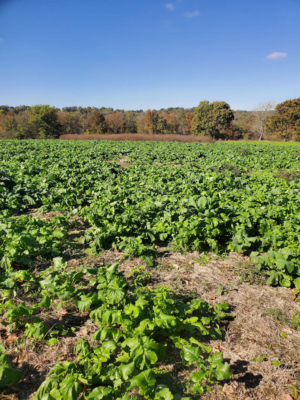 Brassica is an important part of any food plot program. This is the best brassica blend for deer. Feeding deer when the cold arrives and the snow flies is just what our brassica blend does. With forage rape, kale, tillage radish, and 3 varieties of turnips, our brassica blend has it all. We don’t use the ordinary turnips you can get at the local feed mills. We have done a lot of research and testing to find the best and biggest kale and forage rape leaves, turnips and radishes to use in our blend. When the first frost hits, the leaves of the plants start to get sweet, just the way deer like it! Even after all the green leaves are eaten , the plot will still be filled with large turnips and radishes for the deer to dig up and eat. Tons of forage from September until late winter for a lot less than the price of “big buck on a bag” seed companies brassica offerings. Just look at the picture. No other brassica blend can produce results like the Northwoods blend can. Better hope your neighbor isn’t using this! Seeding rate is 6 pounds per acre in late July to early September.